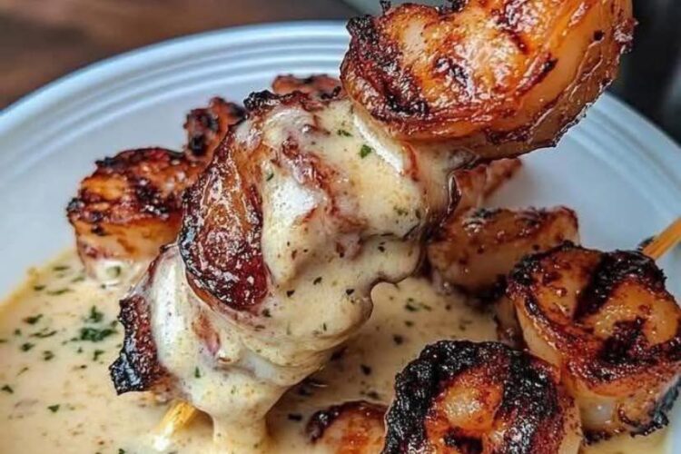 Las brochetas de camarones a la parrilla son una auténtica joya de la cocina moderna: elegantes, rápidas de preparar y absolutamente irresistibles. Este platillo logra un equilibrio perfecto entre la frescura del mar y el característico sabor ahumado que aporta la parrilla, creando una combinación que conquista desde el primer bocado.