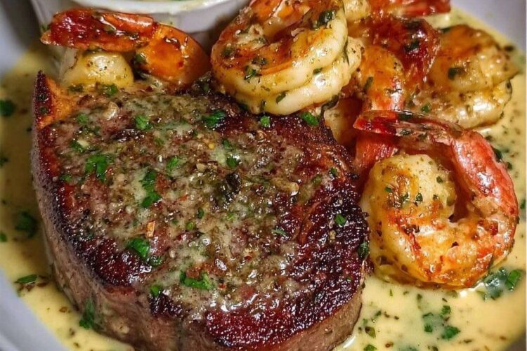 La combinación de filete y camarones, conocida como “surf and turf” en la gastronomía internacional, surgió como un plato que buscaba unir los sabores de la tierra y del mar en una experiencia culinaria lujosa. Tradicionalmente servida en restaurantes de alta gama, hoy es totalmente accesible en casa gracias a recetas como esta, que simplifican el proceso sin sacrificar sabor ni presentación.